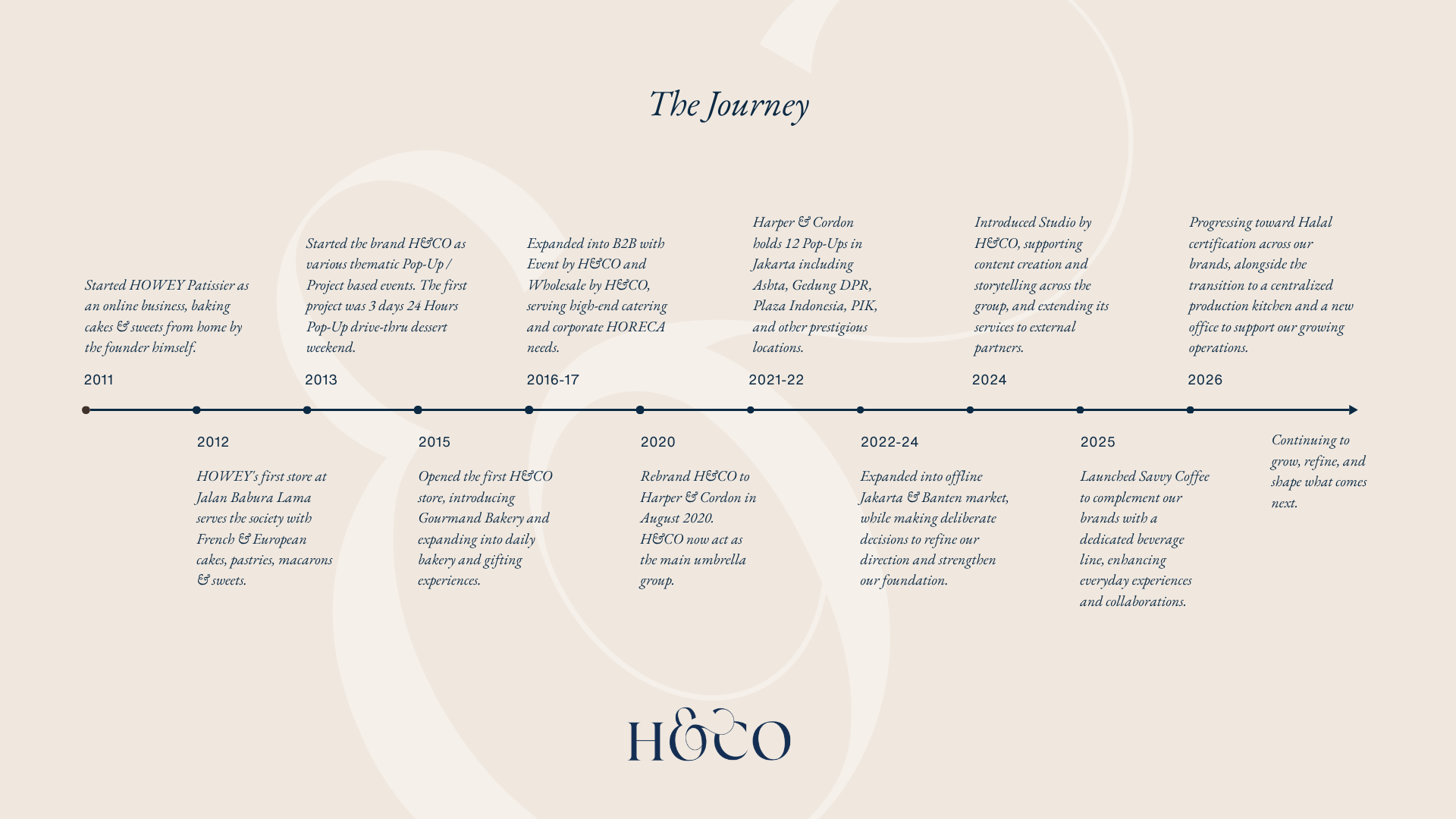 What started as a simple patisserie, shaped by a humble beginning and a quiet ambition to do more, has grown into H&CO, an umbrella group bringing together a collection of brands and services across gourmet, gifting, and lifestyle. Each brand and service carries its own identity, shaped by a shared commitment to quality, creativity, and thoughtful detail.